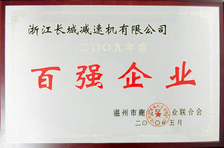 2009年度百強(qiáng)企業(yè) 牌匾