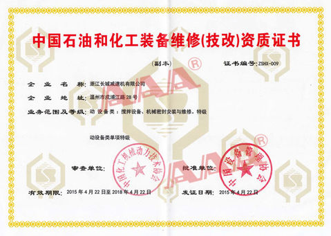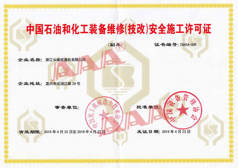 我司榮獲“中國(guó)石油和化工裝備維修(技改)”資質(zhì)證書及安全施工許可證