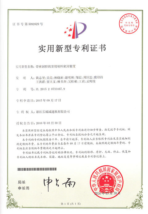 熱烈祝賀我司“帶密封腔的釜用填料密封裝置”獲國(guó)家實(shí)用新型專利