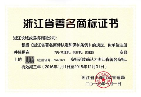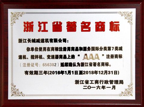 熱烈祝賀我司“AAA”商標(biāo)延續(xù)為浙江省著名商標(biāo)