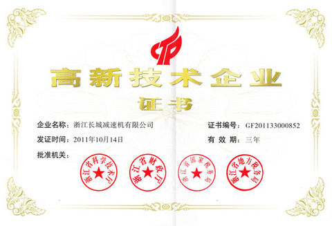 浙江長(zhǎng)城減速機(jī)有限公司 高新技術(shù)企業(yè)證書